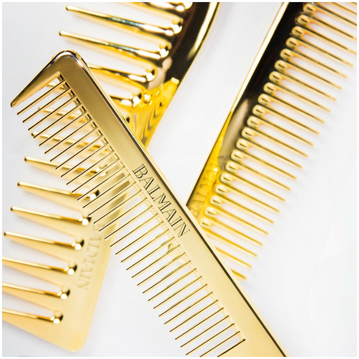 Для нее — аксессуар от Balmain Paris Hair Couture, для него — от Man'S Beard. Золотой гребень от Balmain — это лимитка с позолотой 14К. Он будет бережно ухаживать за волосами любой длины и, конечно же, больше приглянется девушке.