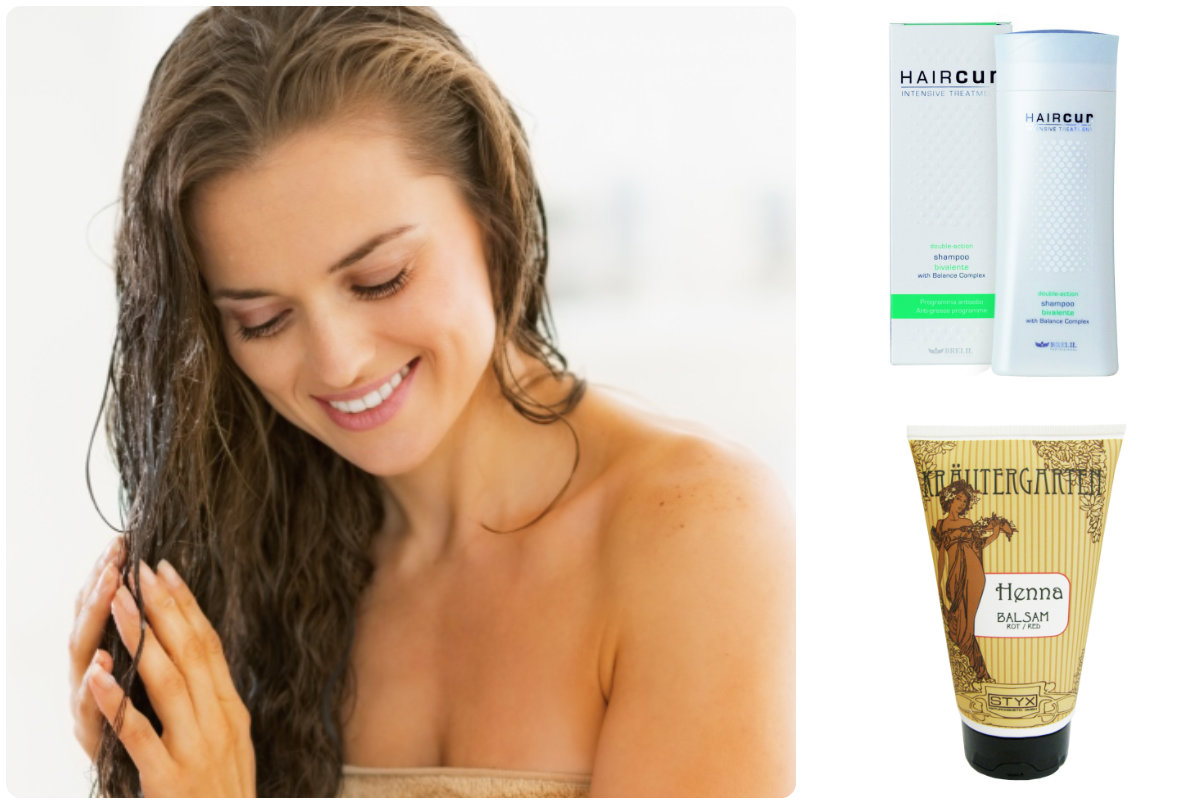 Немаловажное значение имеет и состав используемого шампуня. Лучшими считаются средства, в которых содержатся витамины группы B, лецитин, мед, травы (ромашка, липа, мята, ростки пшеницы) и т.д.. Благодаря подобным добавкам волосы приобретают эластичность и блеск, становятся мягче и приятнее на ощупь. Во время мытья головы шампунь не стоит сразу же наносить на волосы. Будет гораздо полезнее, если вы сначала слегка разбавите его водой, а на волосы нанесете уже полученную пену. Этим вы не нарушите щелочной баланс кожи головы и волос.