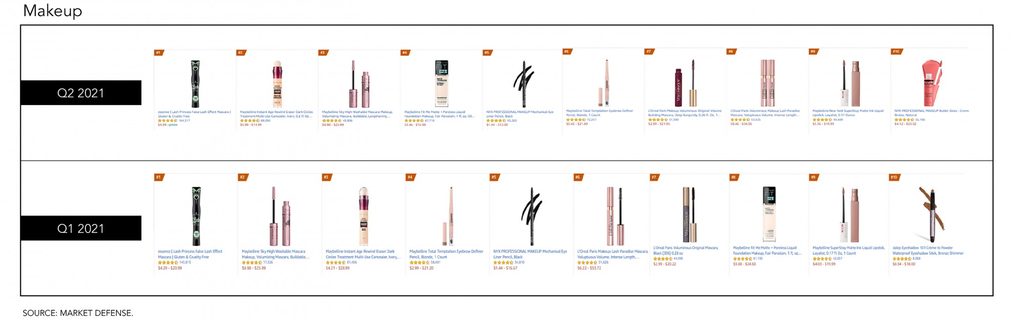 TikTok continues to help catapult brands into Amazon's top 25 rankings, but do sales last? TikTok darling CeraVe had a handful of products crack Q1's top 25 that have fallen off Q2's rankings. CeraVe Moisturizing Cream – Body and Face held the #6 spot with CeraVe AM Moisturizing Facial Lotion – SPF 30 Oil Free taking #12 in Q2, but neither brand made the cut this quarter. CeraVe Hydrating Facial Cleanser – Moisturizing remains on the list but fell three notches, holding the #16 spot in Q2. A TikTok push may be a great short-term visibility tool that provides a revenue bump, but it may not result in long-term sales.