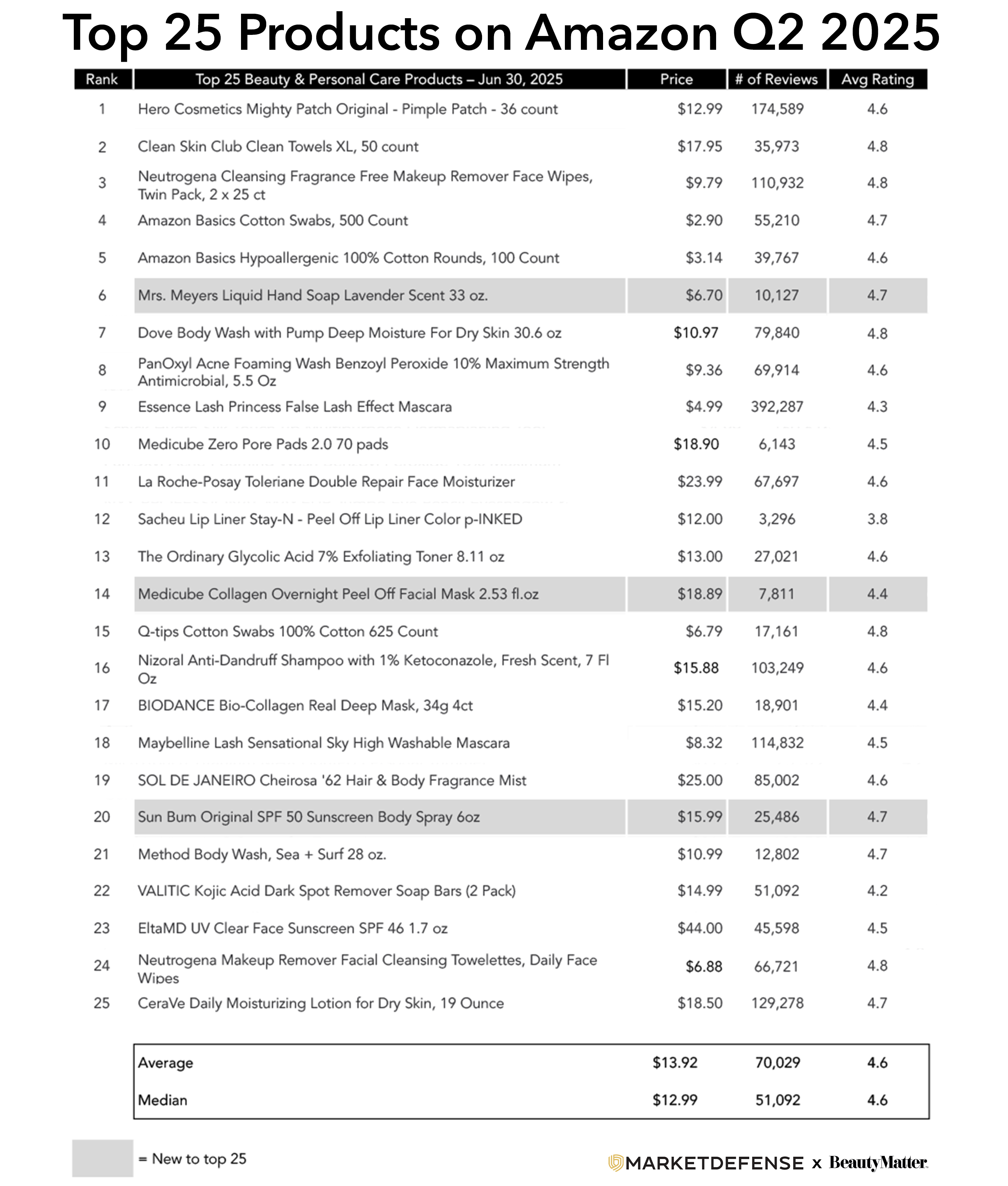 The Top 25 list for Q2 2025 reads like a well-stocked beauty pantry—familiar favorites, proven formulas, and a few strategic surprises that hint at what’s next. The average price of a Top 25 product dropped to $13.92, down from $15.39 in Q1. That’s the lowest it’s been since Q2 2024, and a signal that value is top of mind—even in beauty.