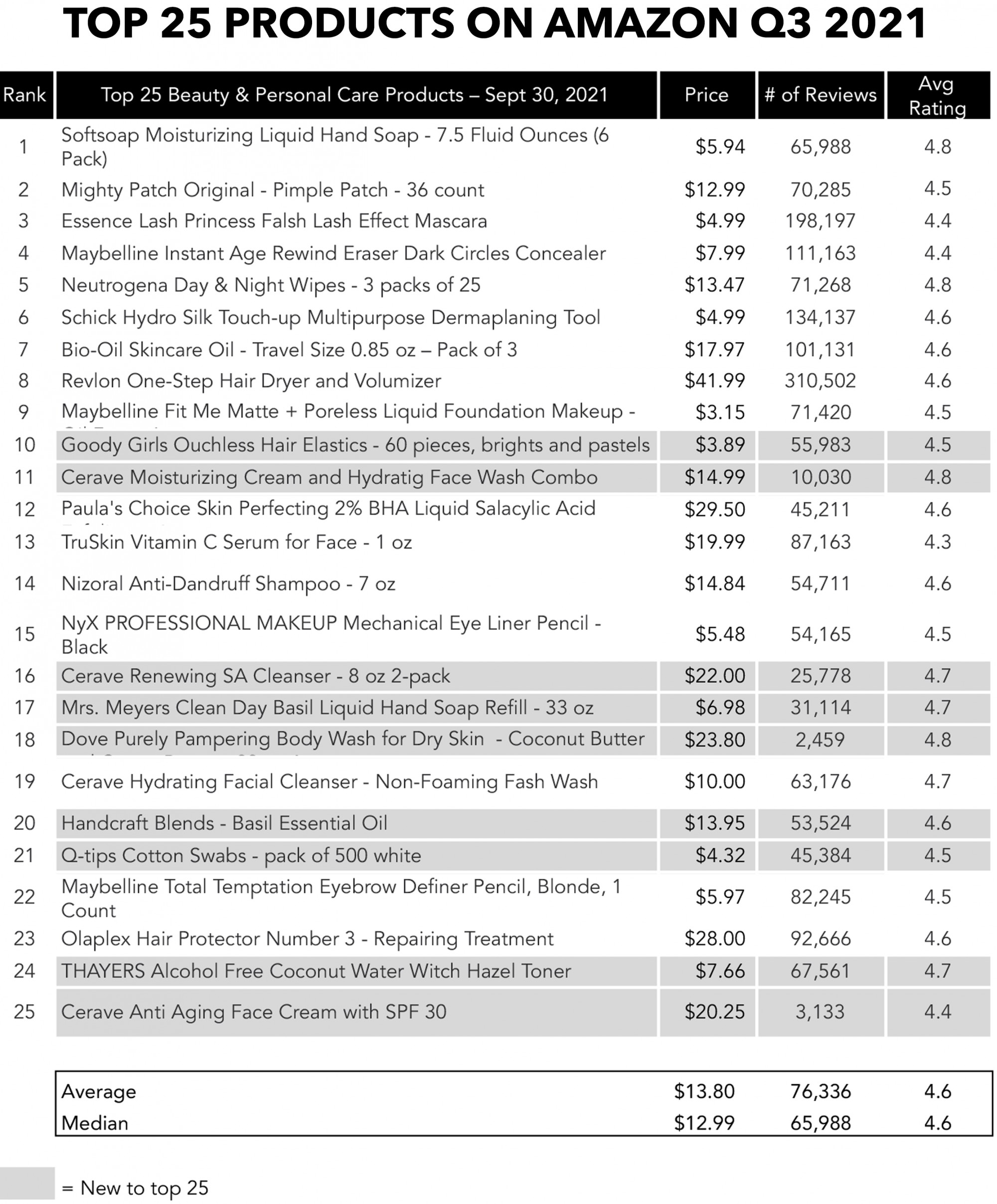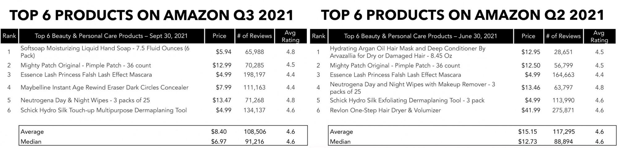 Reference:  Q1 2021 Amazon Top 25 Beauty & Personal Care Q2 2021 Amazon Top 25 Beauty & Personal Care