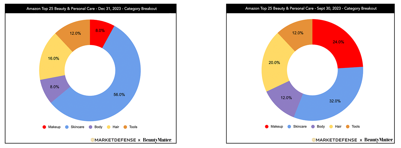 In Q4, the Top 25 list was dominated by skincare products. A record 56% of products on the list were skincare products. This came primarily at the expense of makeup, which had only 8% of products on the Top 25 in Q4, versus 24% in Q3, and body, which fell to 8% from 12%.
