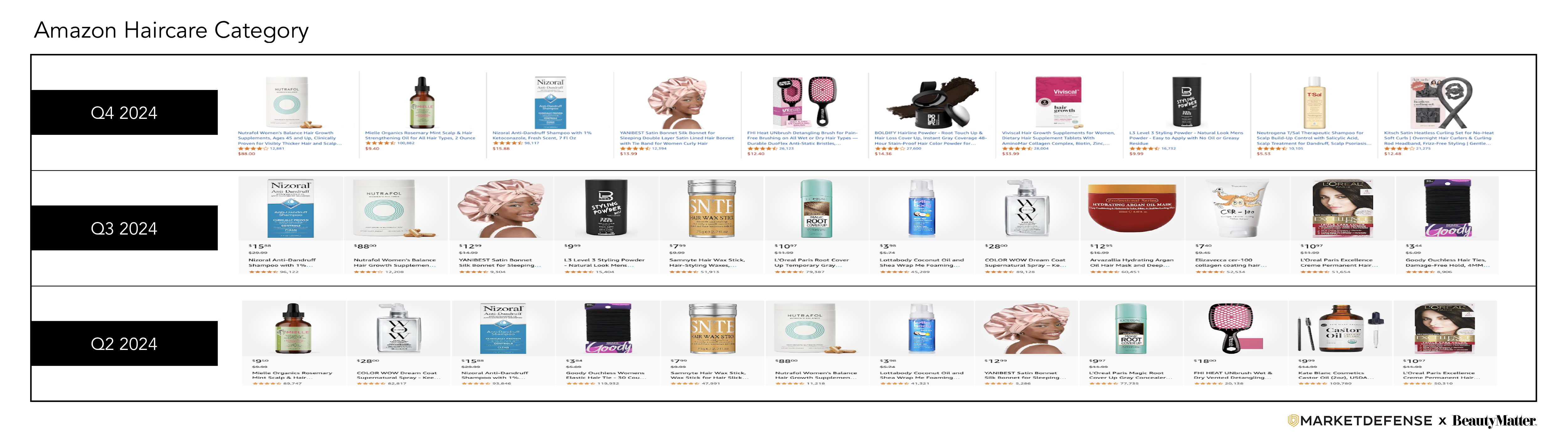 Mielle Organics Rosemary Mint Scalp & Hair Strengthening Oil also reappeared on the list this quarter, securing the #9 position after being absent in Q3. The only new entrant to the top 25 was the YANIBEST Satin Silk Bonnet, which debuted at #16.