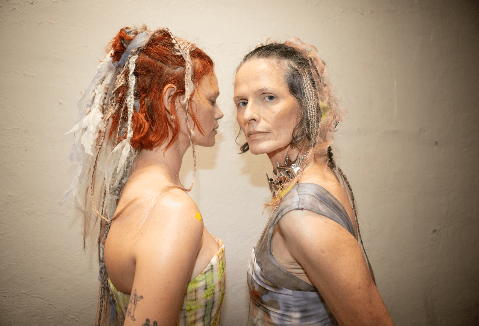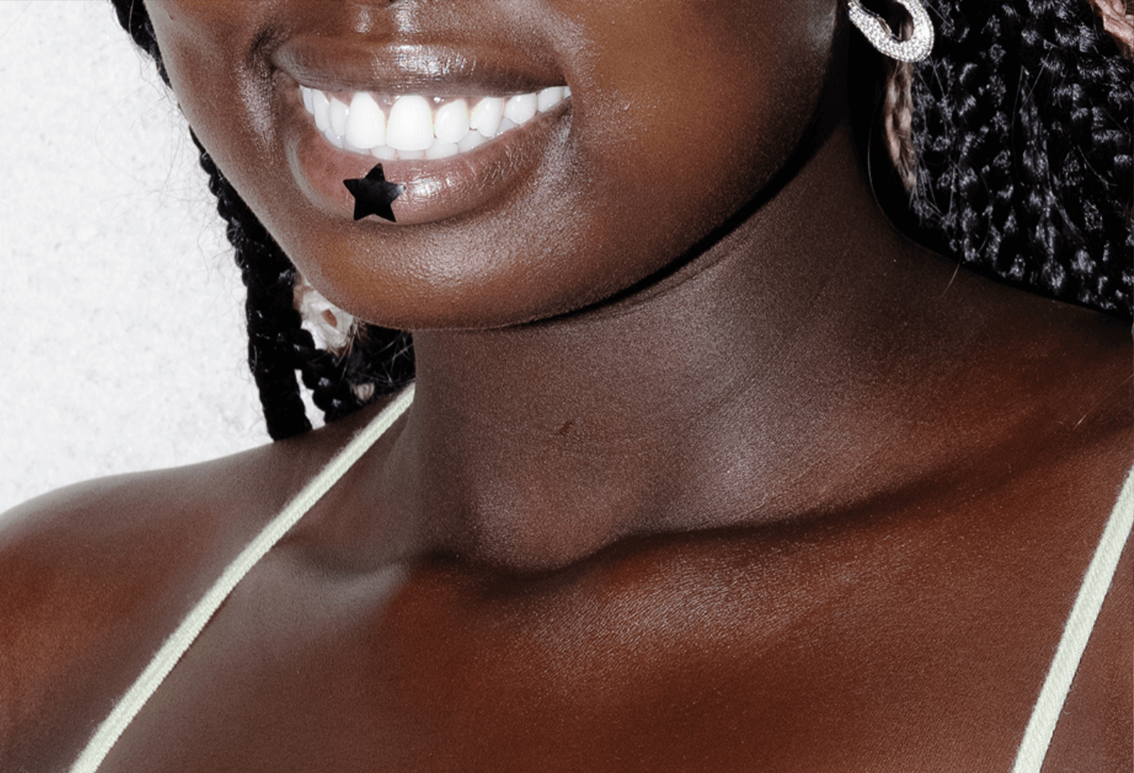 Starface: At Collina Strada, Starface celebrated acne with a fashionable stance. Pimple patches, including Hydro-Star + Salicylic Acid, Black Star, and the brand's latest Hydro-Star iteration, Hydro-Star + Tea Tree, were dotted across models' faces and bodies to create a range of patterns and designs not previously seen on the runway. The show was concluded with a performance by King Princess, who was also seen wearing the patches to promote playful moments of self-expression.