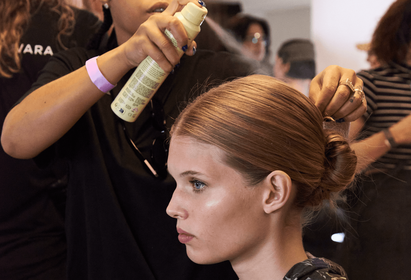Sola Salons x Living Proof: The salon group had its debut at NYFW as the official hair sponsor of Alice + Olivia's SS24 presentation, with 13 beauty professionals from varying salon locations collaborating with Matthew Curtis, the lead hair stylist for Alice + Olivia. The looks followed the show's theme, inspired by Truman Capote's "swans"—socialites the novelist surrounded himself with, whom he once described as “women with style, money, connections, and a flare for living well.” The team collaborated on styles for 30 models, including spiked top knots, sharp-cut bobs, and intricately detailed updos with encrusted pearls and crystals. Living Proof was the official product sponsor for the show, with stylists using products such as the Full Dry Volume & Texture Spray, No Frizz Smooth Styling Serum, and Living Proof Style Lab Flex Hairspray.