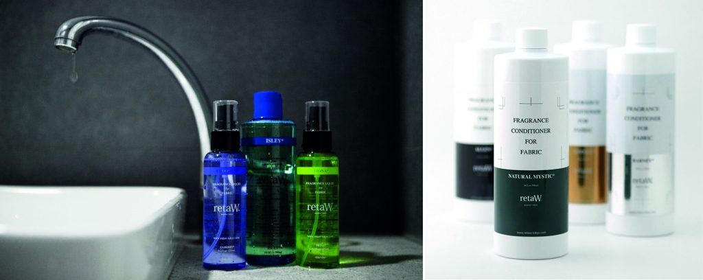 In Japan, leading taste-maker Hiroshi Fujiwara created retaW (the word, water, reversed) dedicated to creating a “full, holistic lifestyle wrapped in scent,” with products organised according to a fragrance inspired by a musician or record. Products have contemporary structures with a colour palette of khaki, white, blue, green, and metallic silver and copper accents, aimed at fragrancing every part of your environment: classic personal care, candles, home and car air freshening tags, fabric liquids, room sprays, and more.