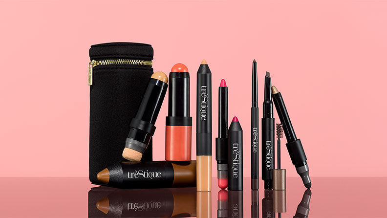 trèStiQue simplifies the everyday makeup routine with easy 2-in-1 products. Face, eye, & lip crayons in a portable makeup bag for a quick 5-minute face.