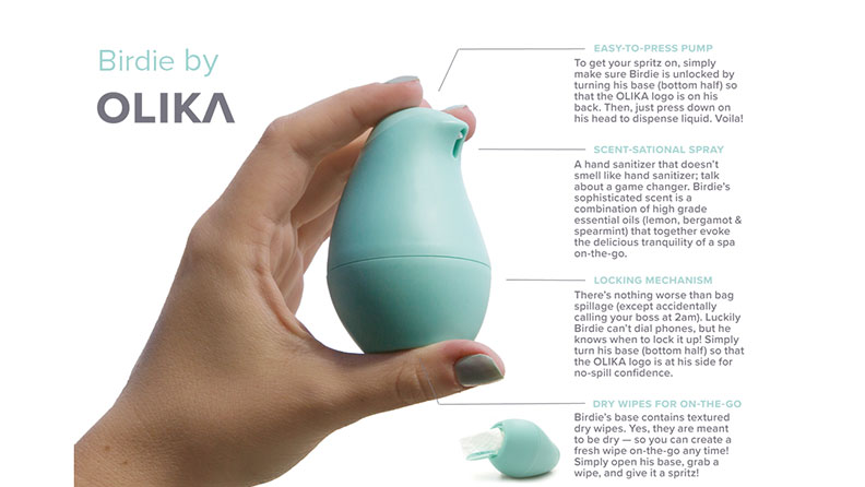 OLIKA is a design-forward personal care company reimagining consumer staples, starting with hand sanitizer. Our first product is Birdie, an adorable 2-in-1 hand sanitizer with a natural sanitizing spray and dry wipes for additional cleaning power.