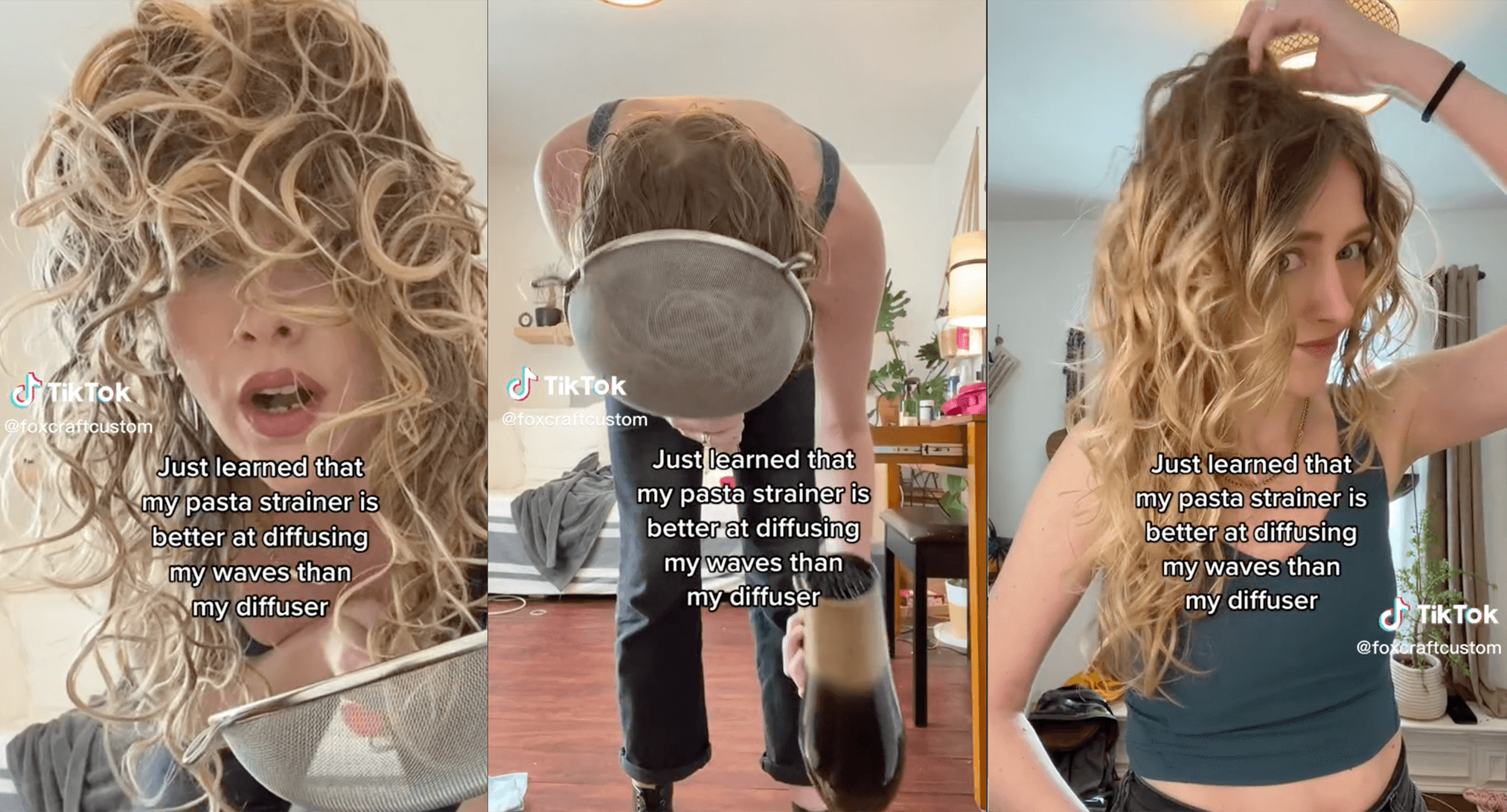 Every month there is a new hair-curling craze. Last month the double curl method captured users' attention, and shortly before, forced curl routines had trended. In February, creating curls with kitchen appliances was the latest curling commodity. While most would typically use a diffuser, with this trend, others seek results from colanders and sieves typically used to strain liquids from food. With the trend, users wash their hair, add curl creams and leave-in products for the best results, and place their strands into the appliance. Next, they turn on a hairdryer to maximum heat and use the duo as a DIY diffuser. The practice has sparked debates in the comments on its effectiveness and the potential risks involved—including the hot temperature of the metal of the colander, which can burn the skin, or hair becoming trapped within the strain holes. Regardless, users are still attempting the trend, with a video from @foxcraftcustom bringing in a staggering 24.1M views as the creator claims, "This pasta strainer is better at diffusing my waves than my actual diffuser."