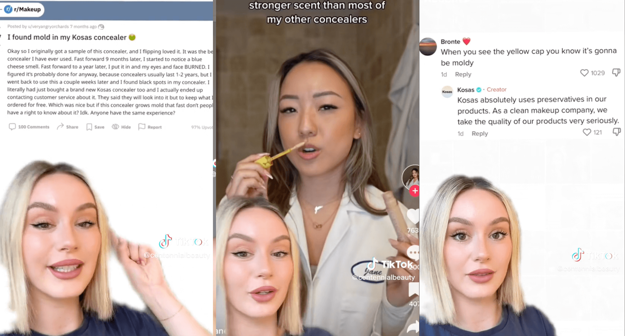 After a post on Reddit addressing mold in clean beauty brand Kosas' concealer gained several upvotes, TikTok users began to discuss the issue, commenting on whether they believed the claims were valid. In several videos, users suggested they found mold in their concealer, yet a large percentage did not actually show any evidence. Chemists and formulation experts took to the app to clarify the situation. A popular video from @janethechemist explained that if the main preservatives of potassium sorbate and sodium benzoate are used within the product, they are enough to pass testing standards before the product is retailed but will result in quicker expiration. The video has received almost 300K views, opening the door for speculation.