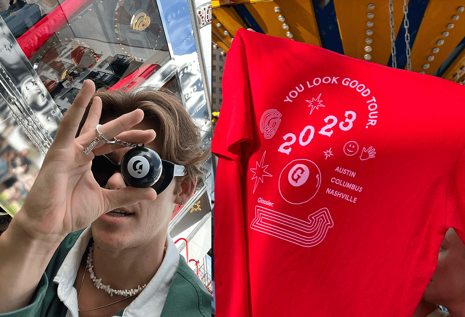 The truck was designed with a carnival-like aesthetic, featuring aspects such as a wheel of fortune that gave customers a chance to win free products, discount codes, or exclusive merch. For every You Look Good tour t-shirt sold, Glossier donates $5 to Ignite, a nonprofit that works to empower young women to become the next generation of political leaders. Alongside the pop-up, Ignite volunteers were on hand to encourage consumers to register to vote.