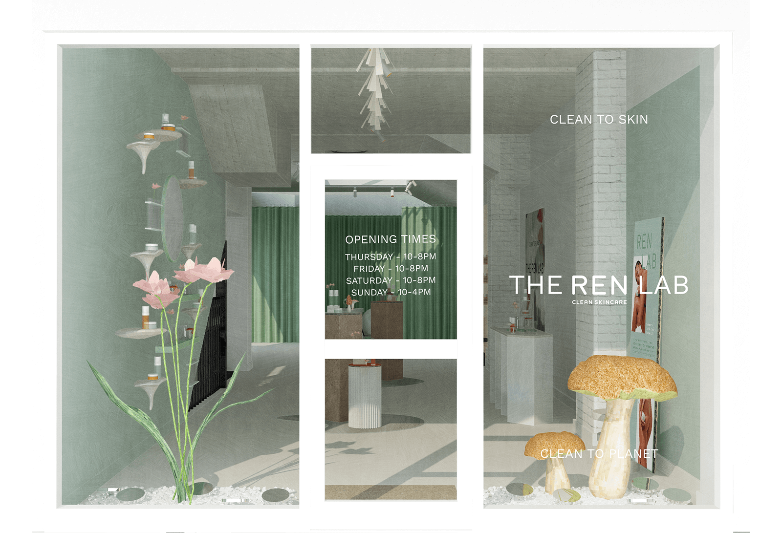 Ren Clean Skincare: The sensitive skincare brand opened a pop-up in London's Soho location to share information with customers on its latest launch, the Evercalm Barrier Support Body Balm. The space was created to help the brand's consumers explore the power of nature's bioactives and the way they work within Ren products. The store was decorated to perfectly match Ren Clean Skincare's aesthetic and ingredient origins, with soft pastel green walls and elements representing nature including wild mushrooms and a floral display in the windows.