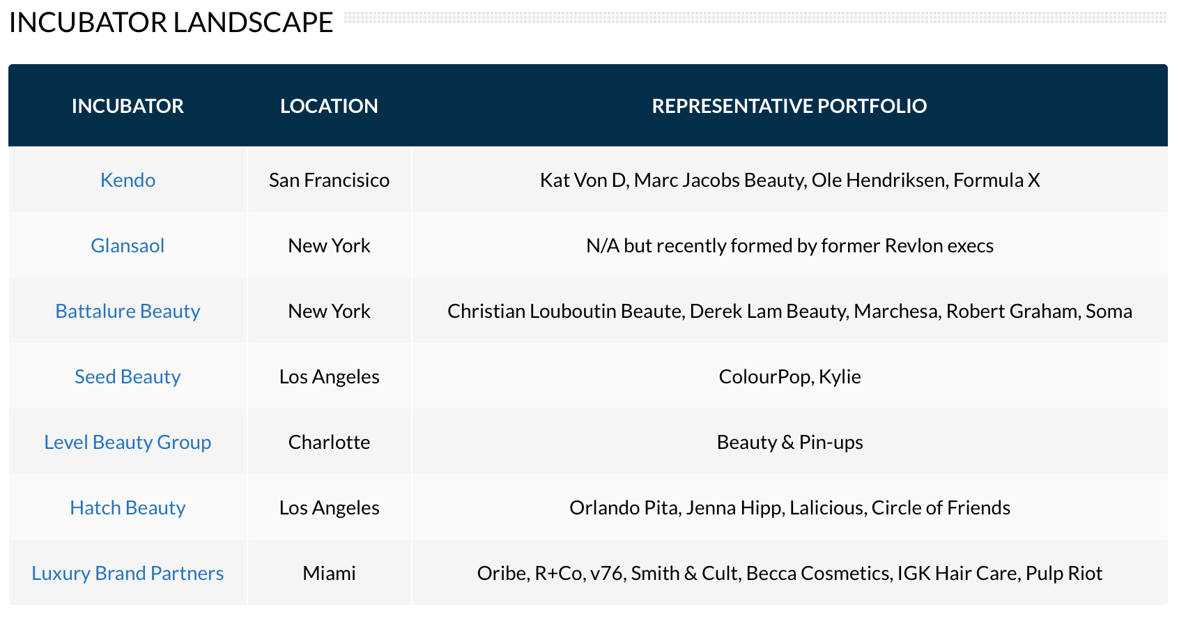A relatively new concept that has emerged with the proliferation of the “indie” beauty craze is that of incubators. Traditionally thought of as more of a Silicon Valley phenomenon, several accelerators have formed to focus exclusively on beauty (which is great news for young entrepreneurs who don’t necessarily have the wherewithal to scale but who have a unique concept). These firms not only contribute capital and innovation, but can also offer diversified distribution channels, infrastructure, and vast networks of mentors and experts—a powerful proposition in today’s highly fragmented and competitive market.