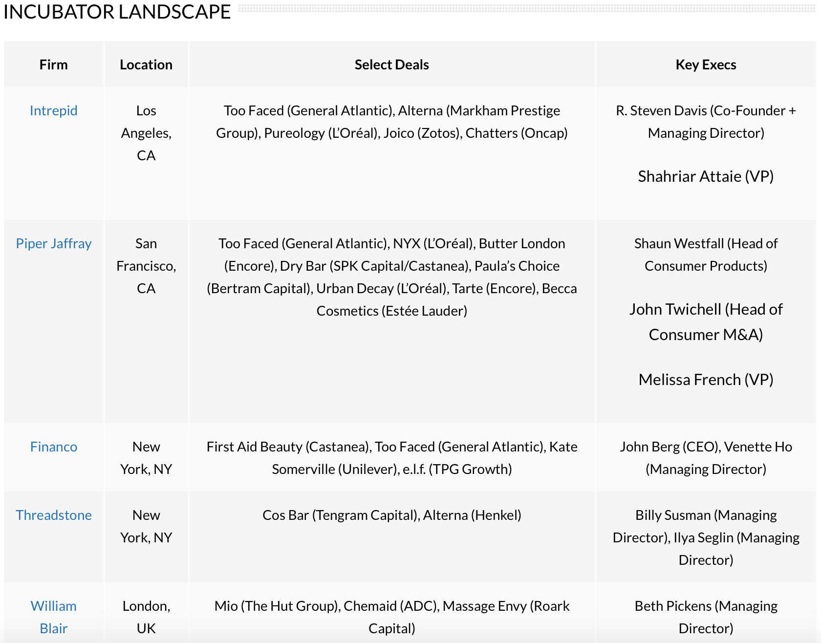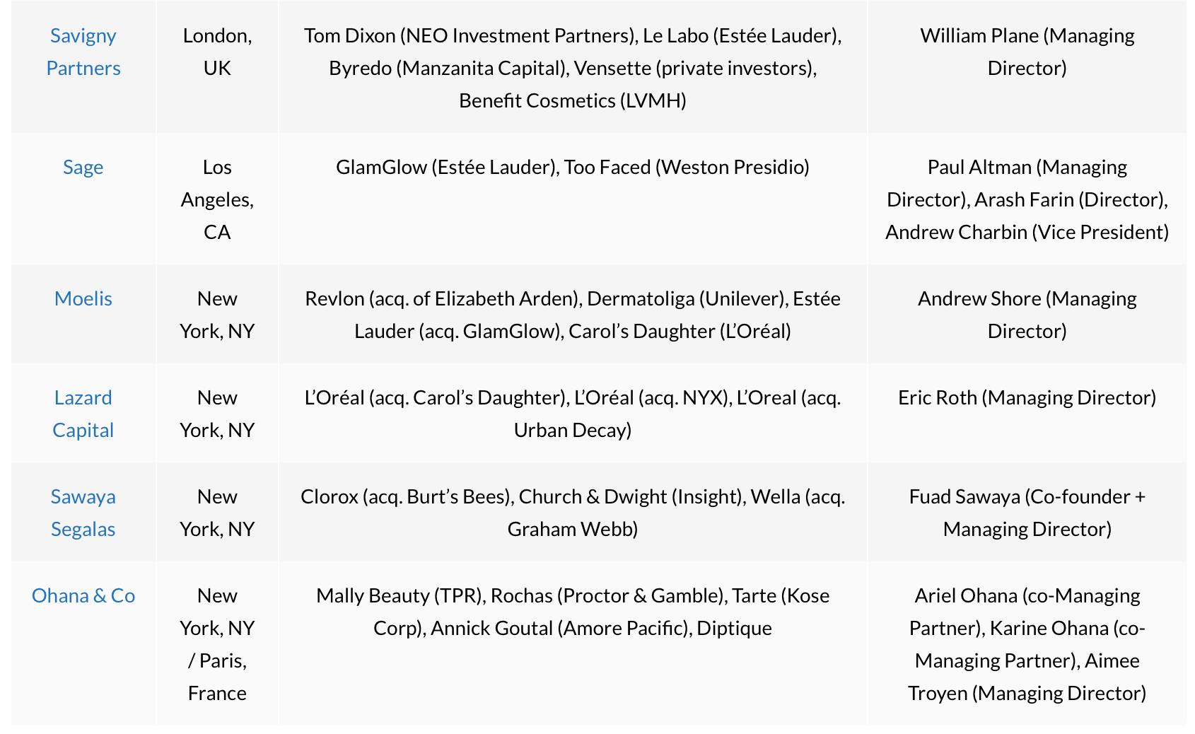 Selling your company (even a portion of it) can be an incredibly emotional, time-consuming, confusing, costly, and stressful event. It’s definitely not all bad, but you want to have a trusted advisor on your side that is not only experienced in M&A but who also understands your priorities and can help to find a partner with a similar vision (not necessarily just the highest bidder). Below are some of the most notable M&A firms within beauty.