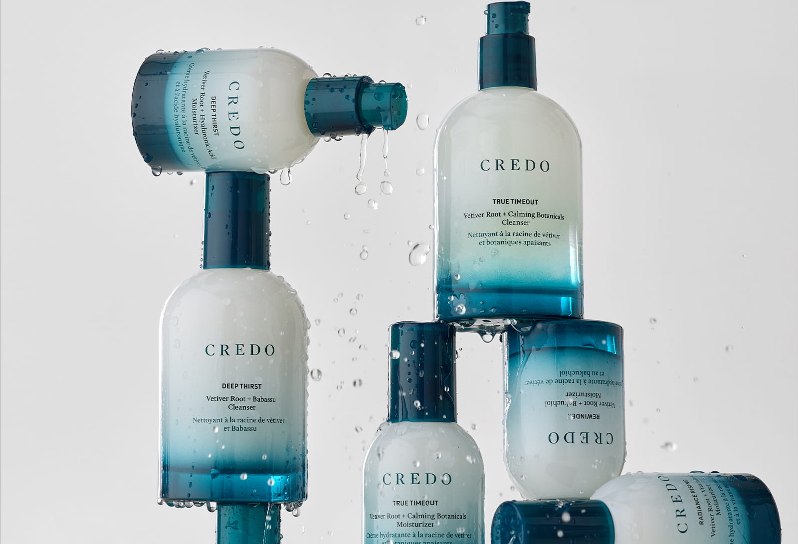 To address a top concern for its shoppers—hydration—Credo clearly leaned into vetiver, an ingredient most readily associated with fragrance. Describing vetiver as a “potent little wonder grass,” Jackson says its root has been proven to boost hydration, protect the skin’s microbiome, and improve firmness and signs of aging.