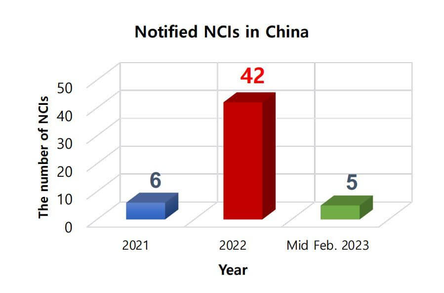 Another breakthrough is that natural or artificial ingredients used in cosmetics for the first time in China are designated new cosmetic ingredients (NCIs). These now go through a separate approvals system based on a three-level risk assessment, but it can take up to one and a half years for registration. The new system resulted in 42 NCI notifications in 2022―up from just six in 2021.