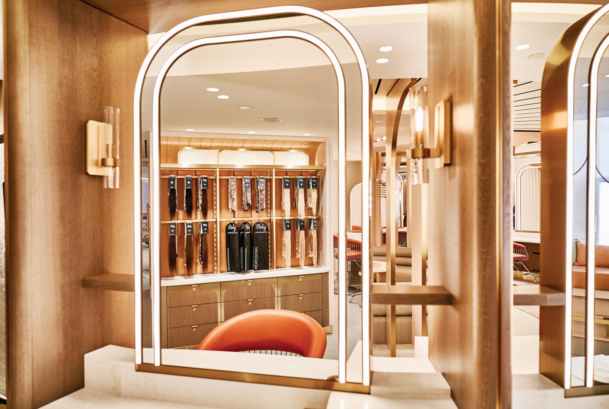 Hairdressing Rotunda: The salon's dedicated hairstyling space features new stations that are spaced out in a curved central seating area, emulating the salon's original 1982 design and bringing to life a feeling of old-world glamour, while also offering privacy for guests and their stylists to chat away freely.