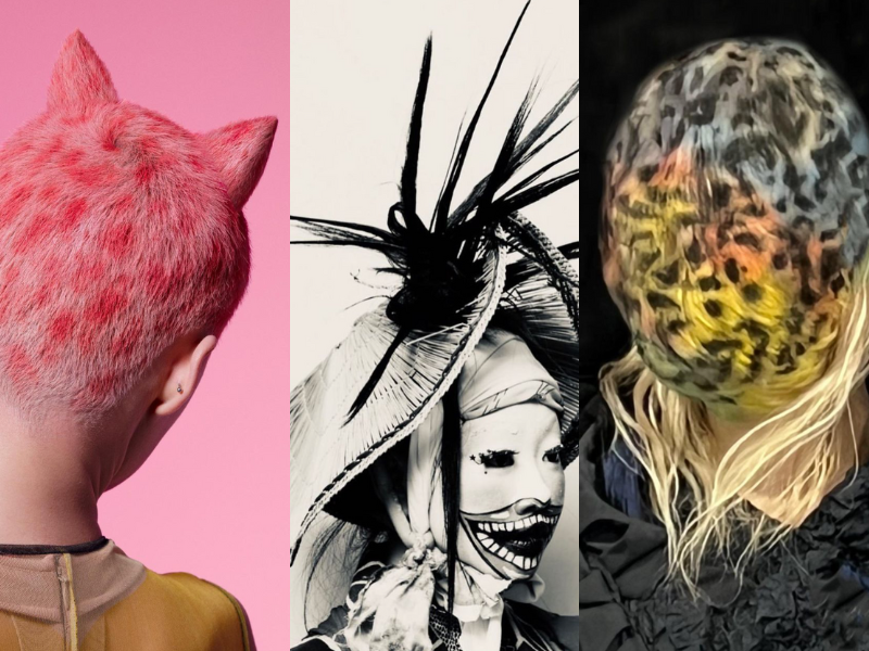 While hair is often styled to shape the face, Narushima often rejects this ideal, creating looks that entirely mask the face using hair decorated in striking patterns, including rainbow-hued cheetah skin. Animal prints are a common theme within the artist's work, with other styles including a candyfloss-pink full head, with hair styled into the shape of cat ears, and finished with rosy-red leopard spots. Nostalgic styles also take their place among the creator's work, including punk-inspired sharp mohawks that stand erect in different directions, to classic ’80s curls with a Narushima twist that sees them molded into a crown shape around the head.