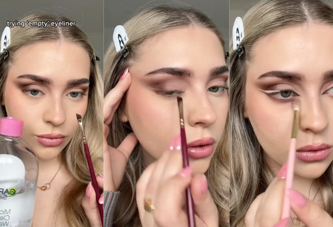 Empty Eyeliner: TikTok has brought with it several eyeliner trends, from eyeshadow eyeliner to sleepy eyeliner; it seems a new trend surfaces every few months. The most recent technique taking the app by storm is empty eyeliner, comically dubbed “John Cena eyeliner” that is created using the less is more approach. Initially posted by @lenkalul (Lena Bagrowska), whose video now has 7.2MM views and 605K likes, the look is achieved by creating a smoky eye with any desired shades and blending it out to create a sharp edged shape that replicates where typical eyeliner would be applied. Once this is complete, users are instructed to take a Q-tip and makeup remover or micellar water, lightly dragging it across the lash line, and extend it to create the look of eyeliner. The technique does not actually use eyeliner, but instead carves out the shape a product would create by removing the previously applied eyeshadow. A thin brush is then used, along with concealer or foundation, to fill in the area, creating an empty, blank space effect. Many other users have also tried and tested the trend, including @mimiermakeup (2.1MM views), @molchanovamua (95.1K views), and @hayleybuix (199.6K views).