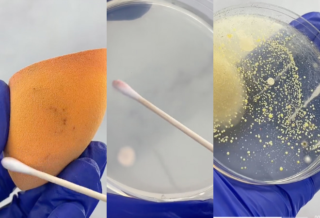 A popular video was posted by @pamelapedrozaa, which currently holds 9MM views and 550K likes. In the video, the content creator uses a Q-tip to take a swab of the surface of her beauty blender. Pedroza then takes a petri dish and wipes the swap across its base, leaving the dish for two days to see what grows during this time. When she returns to the dish, at least a quarter of it is covered with large fluffy bacteria, with the rest of the space heavily populated with spots of bacteria. Several other makeup gurus and influencers have tested the trend, including Huda Kattan, whose video has 4.7MM views. Kattan’s video is accompanied by audio that explains bacteria grows naturally on beauty application products, however, when not washed regularly, they can hold more bacteria than a toilet seat—leading to issues including acne and infections. Several creators have warned about the increase of these issues when people share their beauty blenders and brushes with friends, suggesting it's best to stick to your own products and wash brushes at least once a month.