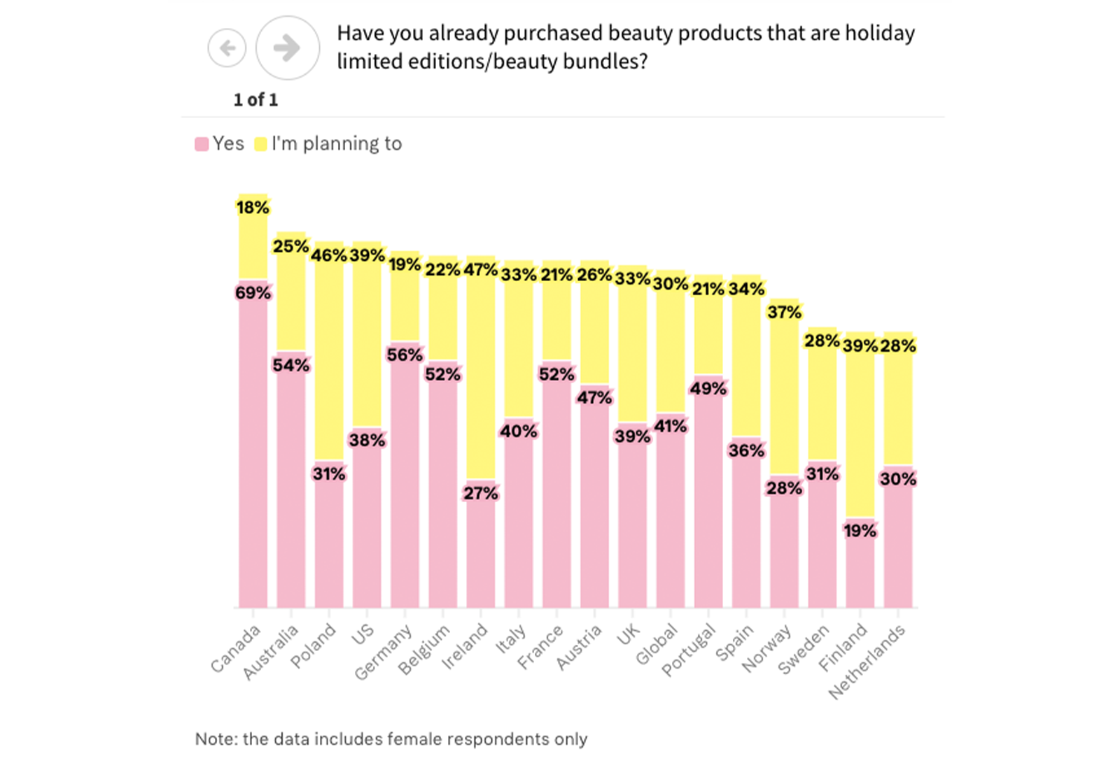 Survey participants were asked if they changed the way they wear makeup or skincare over the holiday season, and 28% said yes. Spain came out as the most experimental country with 33% saying yes, while Finland and the Netherlands opposed the idea of change, with 83% saying no.