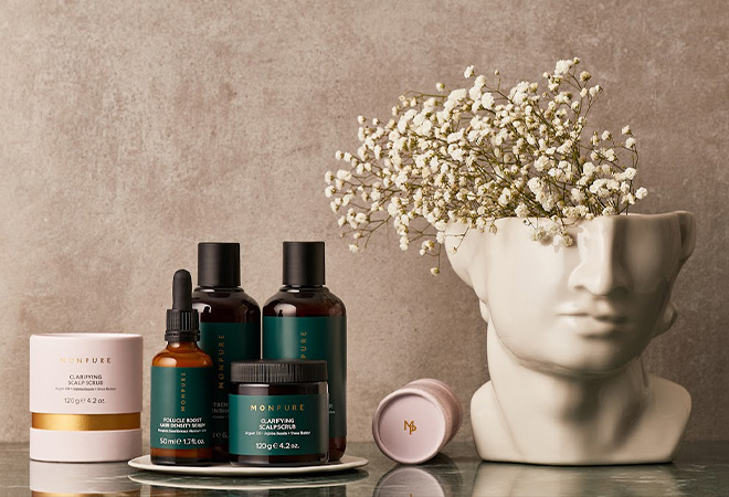 The brand is dedicated to scalp and hair health with a curated assortment of six science-backed products targeting female hair loss. Monpure's founder and CEO Natanel Bigger created the brand with the belief that skincare should not stop at the hairline: "I wanted to find kinder alternatives and bring the skincare approach beyond the hairline and make sure people care as much for their scalp as the skin on their face."