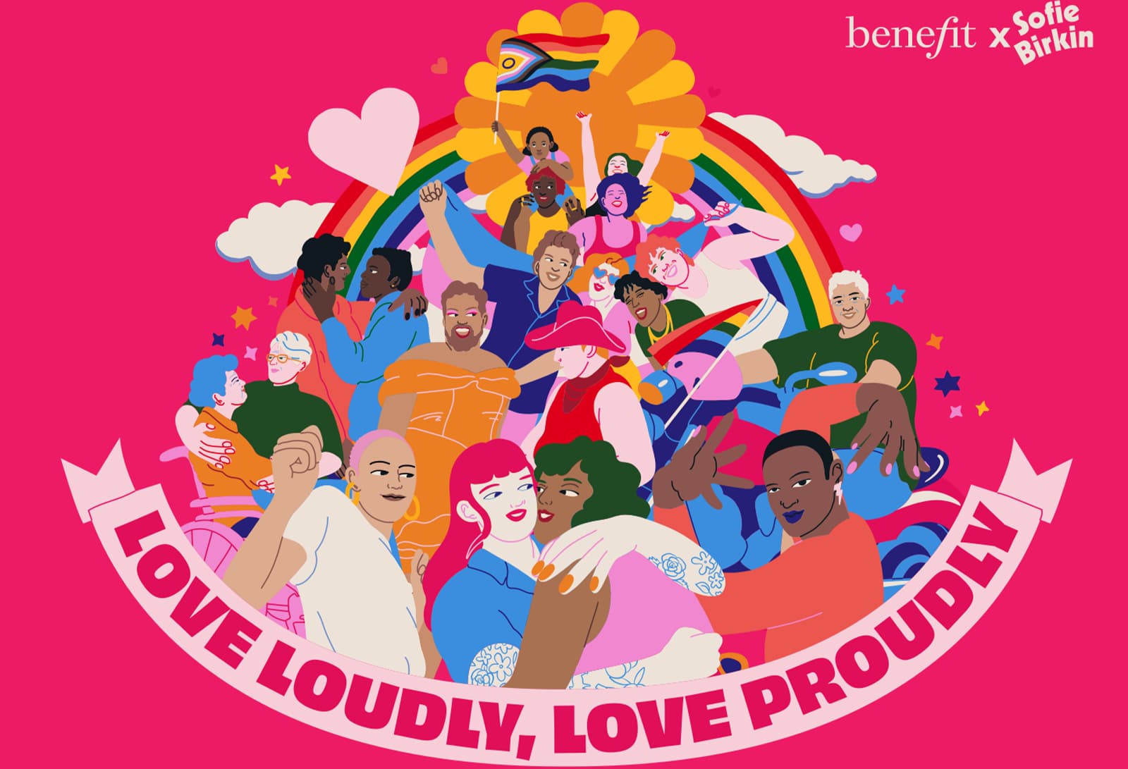 Benefit Cosmetics: Focusing on the message that contributions to Pride month should directly include Queer creators, Benefit Cosmetics partnered with Sofie Birkin, a Queer British illustrator, for their 2023 efforts. Birkin's work focuses heavily on the narratives of Queerness, themes of fantasy, community, intimacy, and empowerment through vivid, eye-catching illustrations. The collaboration allowed for Birkin's work to be showcased on the Benefit Cosmetics float at the San Francisco Pride Parade, decorating the float and the merchandise worn by employees taking part. The illustrations also featured the outfits of employees marching in Pride parades across Germany, Mexico, and Spain. On top of this, the cosmetics company donated $10,000 dollars to the LGBTQIA+ charity of Birkin's choice, The Trevor Project, a leading suicide prevention organization for young LGBTQIA+ members who may be struggling.