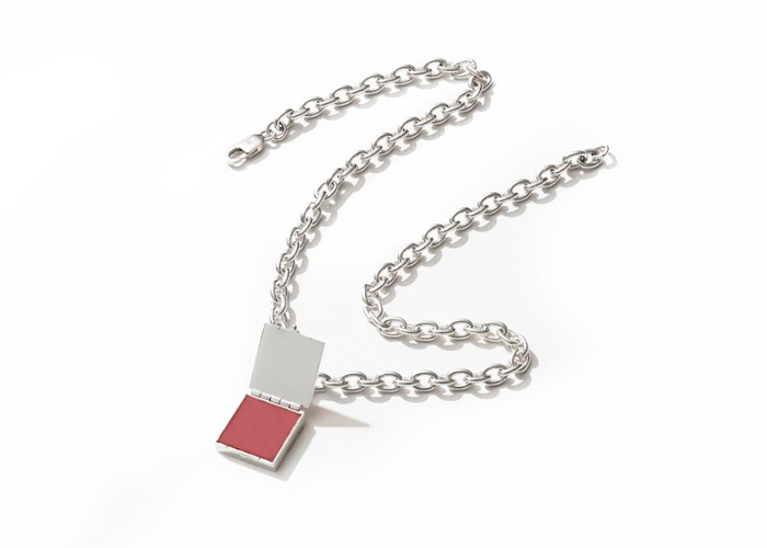 The Lip Locket Necklace is a statement piece with optionality. Designed in silver and gold plate, in 18" or 24" length, the necklace comes with four cruelty-free, vegan, and natural lip shades (Maryl Mulberry, Royce Red, Knownothing Nude, and Quando Pink) that can be added and removed. This sustainable, refillable piece of jewelry also includes a full setup with a safety pin for easy "pop-out" lip shade exchanges and custom tape strips for the bottom of each lip tint pan. Simply lift the lid on the locket box, add or remove one of the selection of four shades depending on your mood, apply, and go.