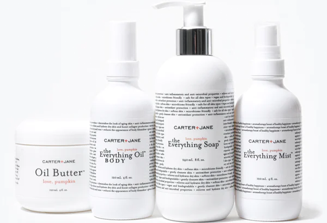 Carter + Jane: Love, Pumpkin Ultimate Collection ($98) is a body care range created to bring comfort to bathing rituals this fall. The Everything Oil Body Love, Pumpkin is said to replace the need for body moisturizers, serums, and cellulite creams, all while providing strong aromas of pumpkin and cinnamon. As an added bonus, the product is suitable for use on both the face and hair. Oil Butter Love, Pumpkin is infused with vitamin butters and soothing organic oils, said to give instant 24-hour hydration and glow to any skin type. The Everything Mist Love, Pumpkin is a classic spritz of pumpkin that provides an aromatherapy boost whenever needed. The Everything Soap Love, Pumpkin is designed not to strip the skin's natural microbiome while protecting it from pathogens and everyday germs. The collection is vegan, cruelty-free, gluten-free, and cold-pressed, and is now available from Carterandjane.com.