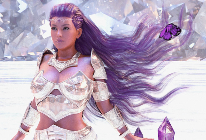 With the limited-edition Divine NFT Collection, these collectibles not only took on physical form in the shape of ethically sourced amethyst, rose quartz, and white quartz crystal lipstick vessels, but also digital shape thanks to corresponding NFT art pieces for each product, each featuring a different goddess portrait (Tyche, Goddess of Chance; Athena, Goddess of Courage; Iris, Goddess of Wisdom) created by Latinx artist Serena Ellis.