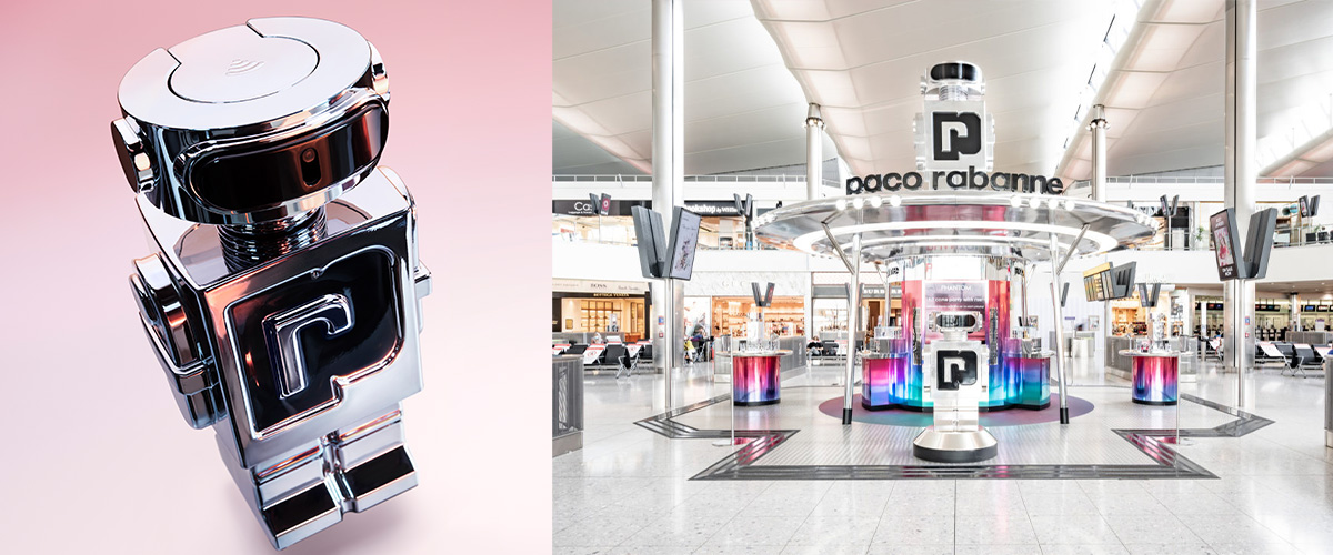 Puig is not holding back. In the world’s top airports more than 100 Phantom animations have been taking place in EMEA, Asia Pacific, and the Americas, with more coming in August and September. The campaign uses eye-catching decorations, promoters in silver jumpsuits, touchless fragrance discovery, personalization, and a “Dance with Phantom” retailtainment game.