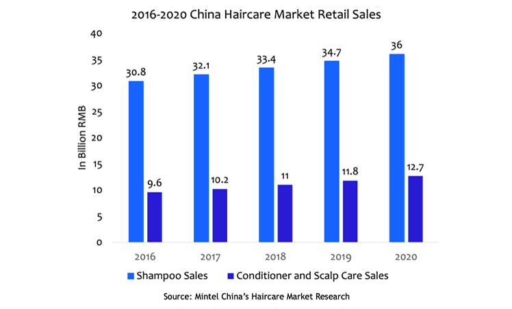 China’s shampoo and haircare market is experiencing steady and sustained growth and is expected to reach 60.5 billion RMB ($9.5 billion) by 2025. The rapid increase in the consumption of haircare products is driven by rising awareness of specific haircare issues and the vertical category, and the consumption upgrade trend in China, in which consumers trade up to more premium products.
