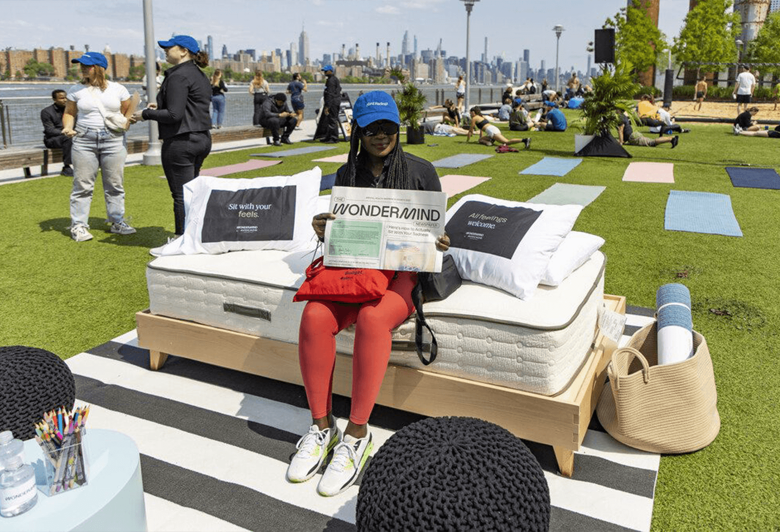 Wondermind: Selena Gomez's wellness brand Wondermind hosted a newspaper stand-style pop-up in Brooklyn to encourage people to check in on their mental health. The week-long event included a range of activities that got visitors opening up about their mental health in an honest and reflective yet enjoyable fashion. From sound baths and meditations led by Sage + Sound instructors to panels and workshops hosted by mental health experts and clinical psychologists, the pop-up asked the question: How are you feeling, really? Wondermind created a 12-page magazine to honor the newsstand vibe, focused on coping with challenging mental health patches, with articles such as 27 Very Good Responses For When You're Actually Not Okay, and 8 Ways To Get Psyched About Life Again. The publication also acted as an opportunity for self-reflection, offering the chance to journal, with designated spaces for writing notes and answering prompt questions. For those who could not make the event, Wondermind uploaded a PDF to their website, which is permanently accessible and available to download.