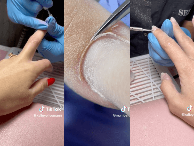 Dry Manicure: The dry manicure simply does not involve water or any form of soak. Drill tools are popular for dry manicures and are used to exfoliate the cuticle rather than cut it as is done in a regular manicure. Those following the trend are also strongly against pushing back the cuticle, which is part of a more traditional manicure to allow for maximum visible polish before regrowth. Instead, the dry manicure softens the cuticle with the drill to keep it healthy. The trend has several viral videos under #drymanicure on TikTok, with over 175 million views many of which discuss its benefits. One of the most proclaimed benefits is the amount of water saved through dry manicures, which results in cheaper water bills for the salon as well as more sustainably conscious businesses and clients. Another alleged benefit of the technique is its sanitation—many have shared that bacteria can build up in warm water getting underneath the cuticles and into the body. However, several salons have debunked this fear, stating that regularly cleaned equipment eradicates the bacteria, making all types of manicures sanitary and safe.