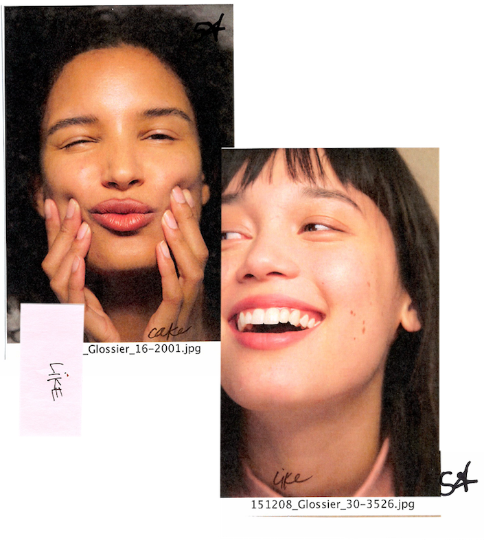 Gaggles of girls surrounded product stations that were spread throughout the space, sampling and experimenting with all of Glossier’s offerings. More of the pink-clad employees milled about, there for questions without trying to hard sell you in any way.