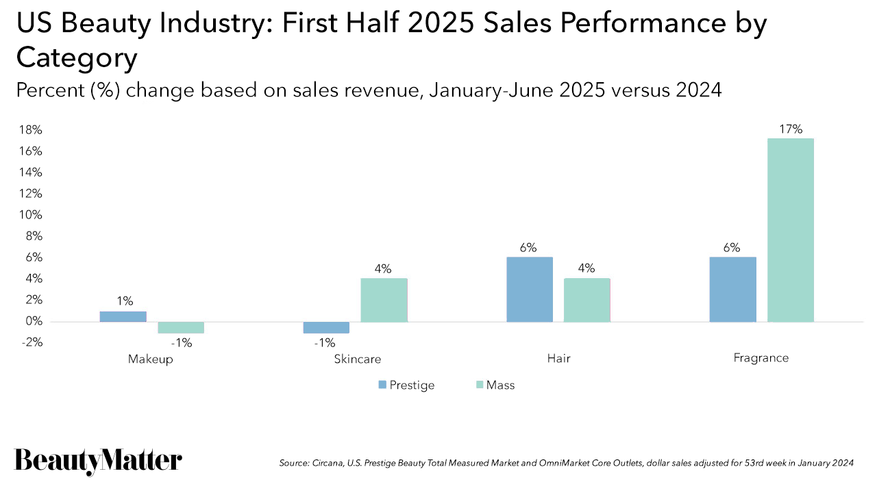 According to Circana data, the US prestige beauty market grew by 2% to $16 billion, while sales at mass merchants increased 4% to $34.6 billion in the first half of 2025.