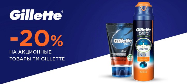 Скидка 20% на акционные товары ТМ Gillette