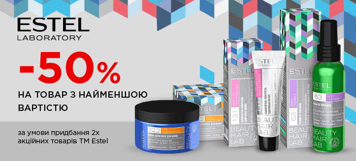 Акція від ТМ Estel 14 серпня 2017 Придбайте два акційних товара ТМ Estel, та отримайте знижку 50% на товар з найменшою вартістю*при наявності акційного товару Акція скінчилась 28 серпня 2017