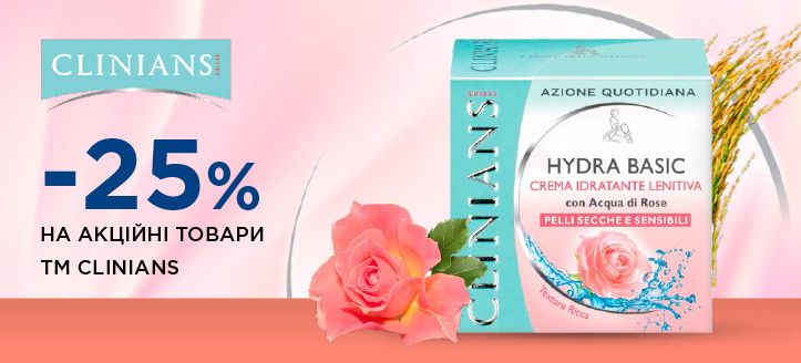 Акція від ТМ Clinians 06 квітня 2017 Знижка 25% на акційні товари ТМ Clinians*при наявності акційного товару**ціни на сайті вказані з урахуванням знижки Акція скінчилась 30 квітня 2017